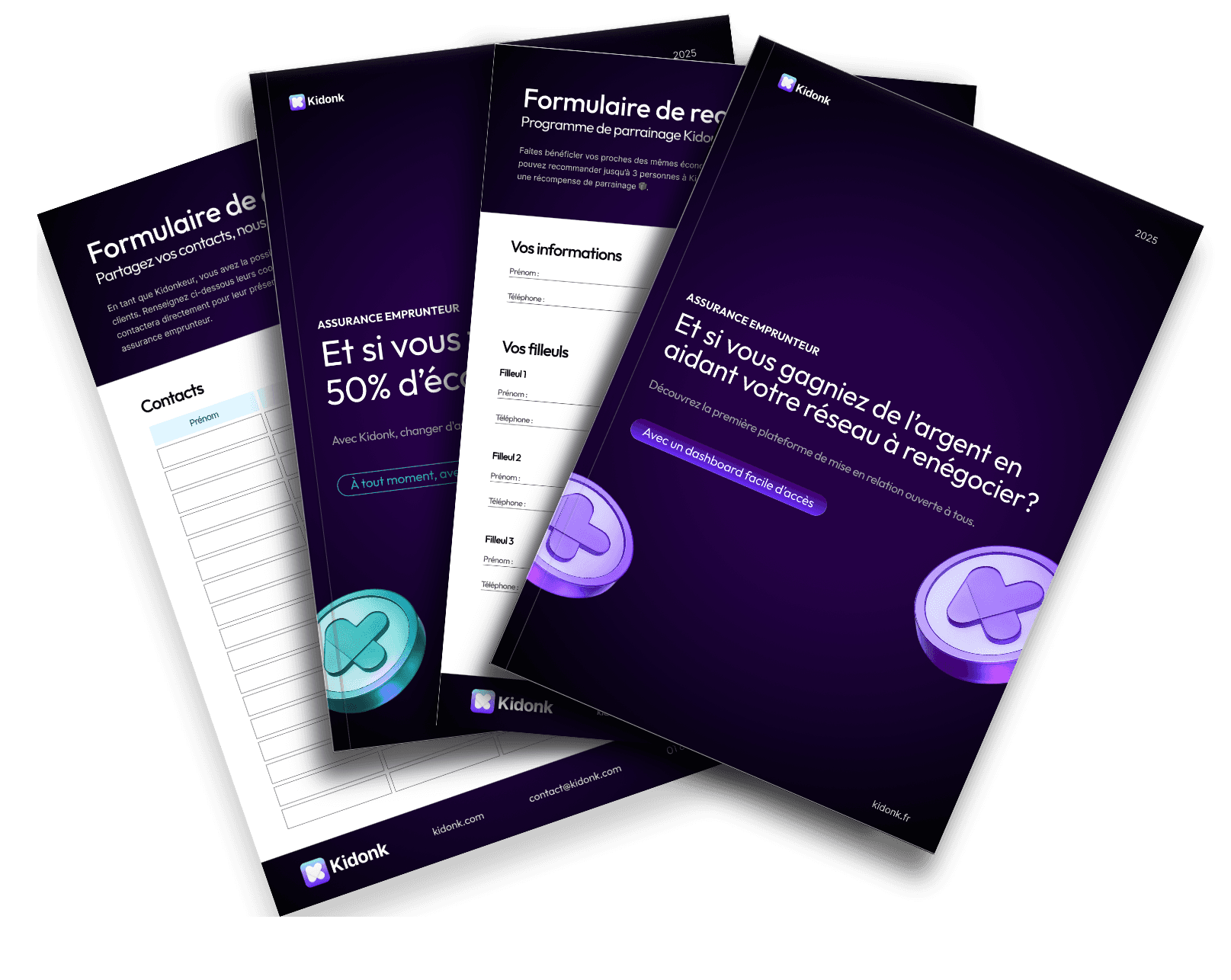 Kidonk, c’est la 1ʳᵉ plateforme ouverte à tous ceux qui connaissent des propriétaires. Grâce à notre Dashboard sécurisé, vous pouvez ajouter facilement des propriétaires, suivre l’avancement de leurs dossiers et participer à un mouvement collectif qui permet à chacun de faire bouger les lignes de l’assurance emprunteur.