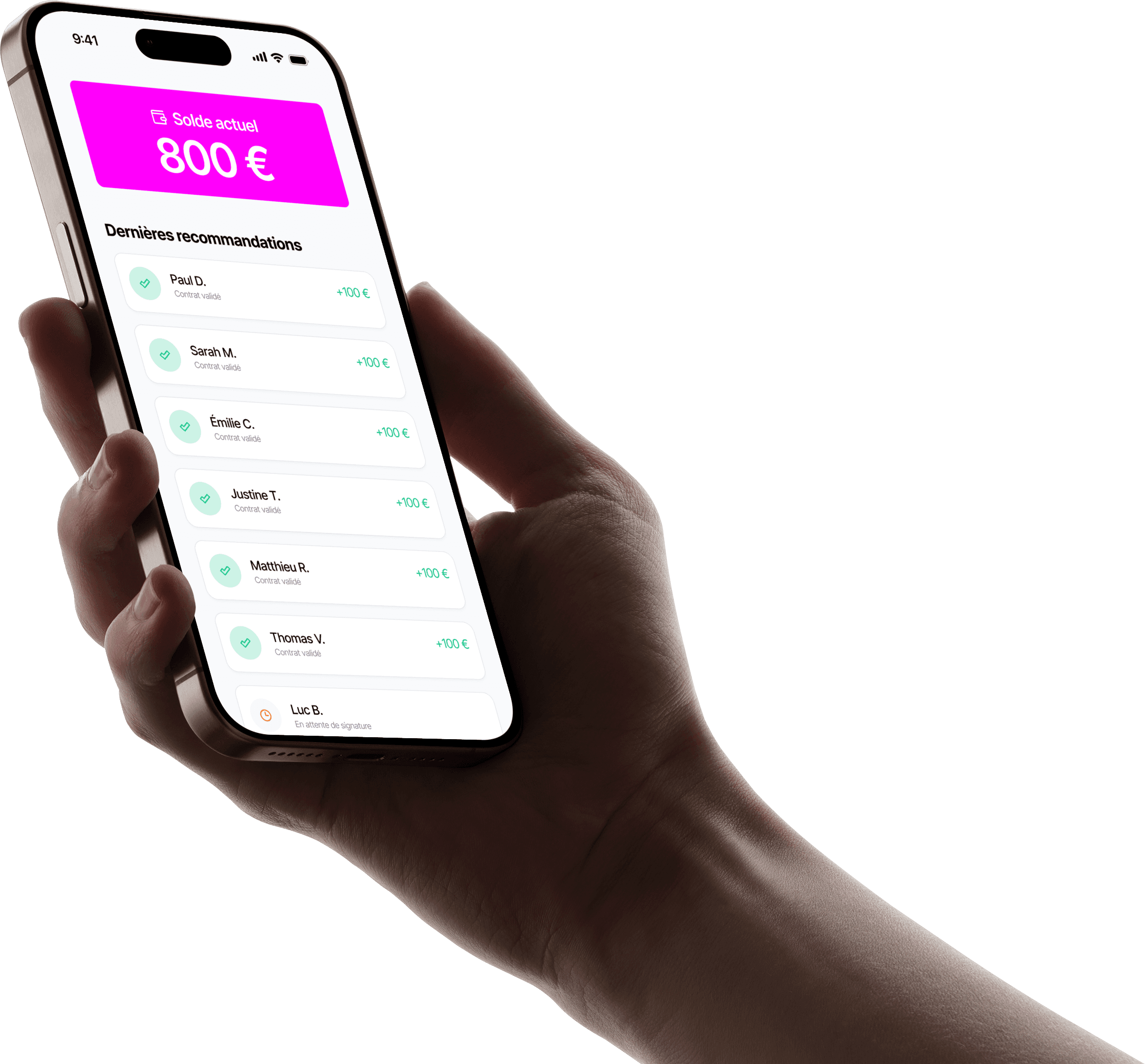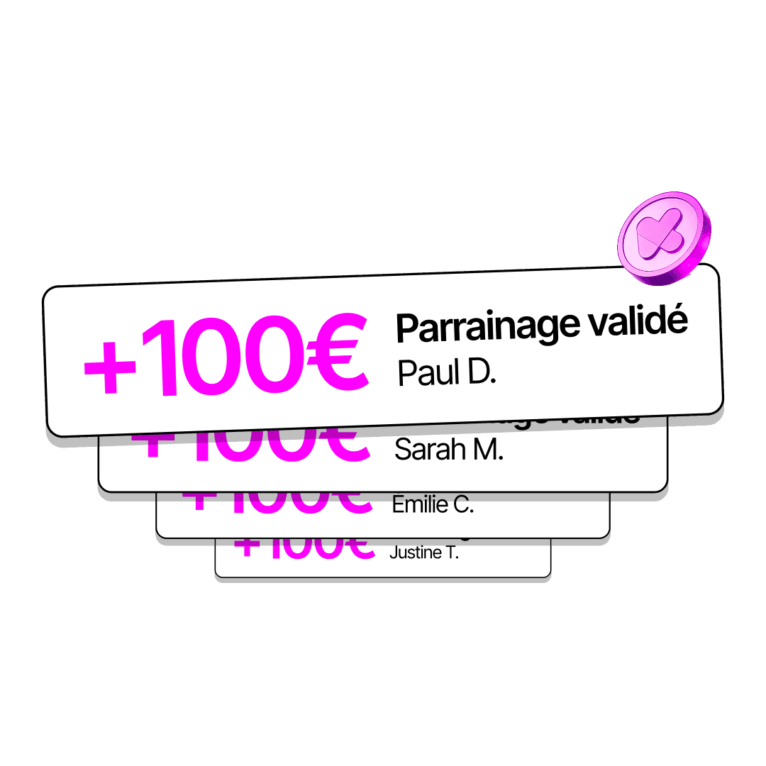 Vous touchez 100€ pour chaque recommandation validée.